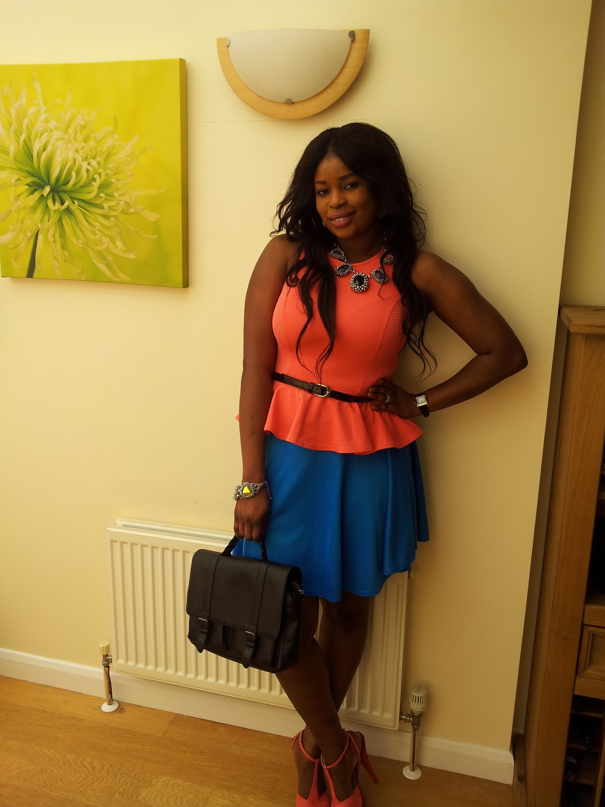 Hi lovelies, for today's outfit post, i'm mixing two bright colors. I choose a peach peplum top and a blue skater skirt. I was on my way out with hubby and said i do a quick outfit update. I love the peplum as it gives you a cinched in waist and it can be worn with just about anything a skirt, jeans, pants etc. Anyway i hope you all like it, do have fun dressing up...........Enjoy